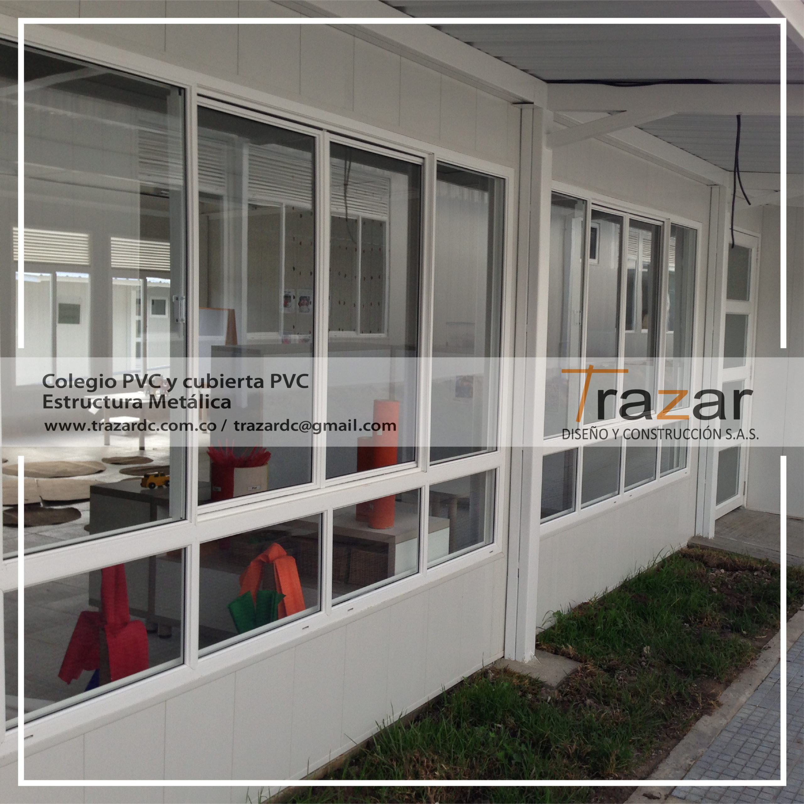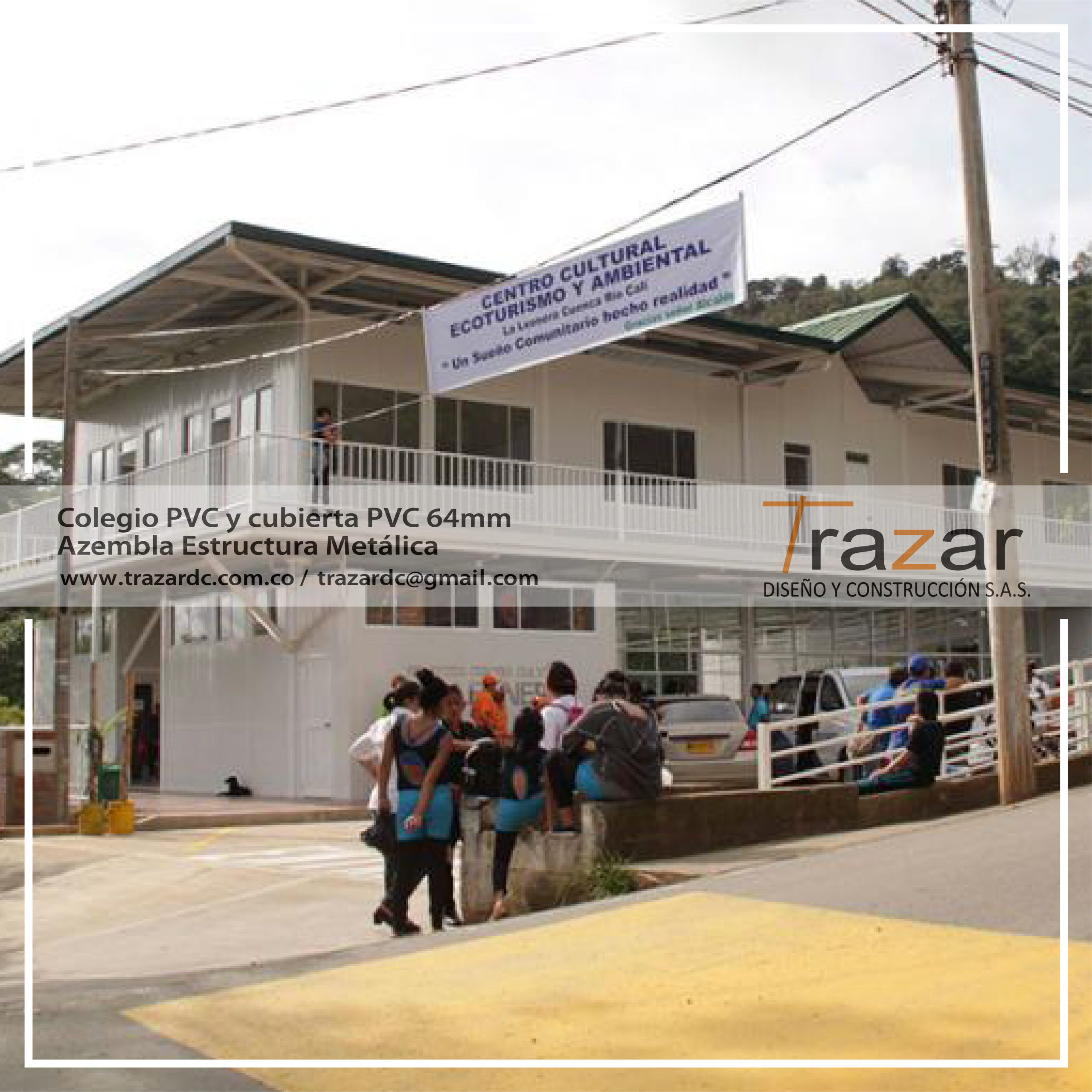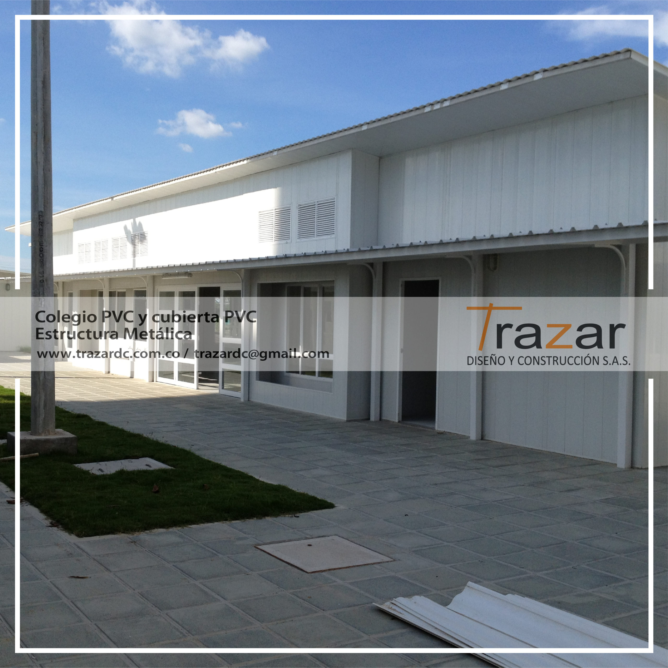 Se realizan diseños y construcción en estructura metálica, obra civil y materiales PVC y Panel Sándwich con Poliuretano para el sector Educativo, con el fin de entregar un proyecto integral para los diferentes requerimientos como aulas, centros de salud, salones sociales, baterías de baños, baños portables, oficinas, cuartos de residuos, canchas de futbol, mimetizaciones, cubiertas, coliseos, refugios, entre otros.